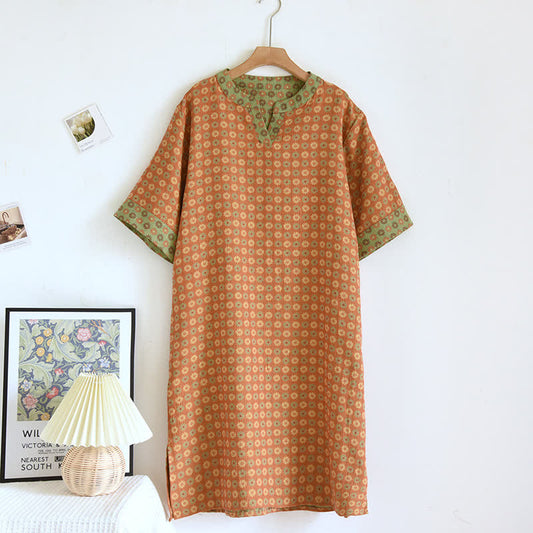 Ownkoti Vintage Leaf Cotton Lapel Loungewear Set