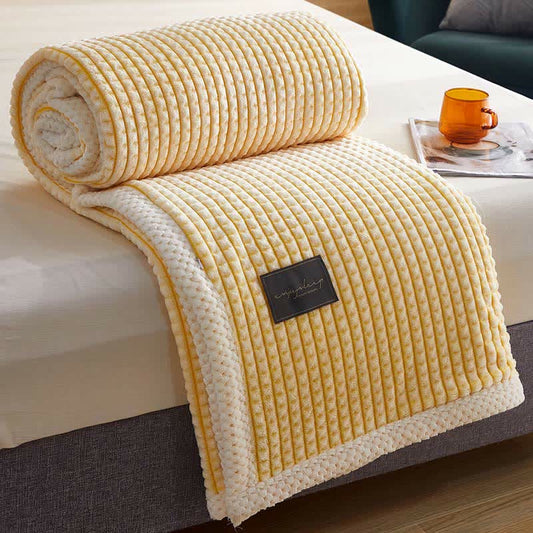 Ownkoti Solid Color Ribbed Plush Blanket, Flannel Comforter,