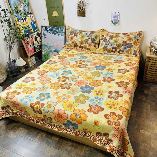 Ownkoti Goldenrod Flower Printed Reversible Cotton Quilt