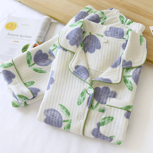 Ownkoti Pomegranate Flower Cotton Jacquard Vintage Yarn-dyed Pajama Set