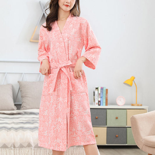 Ownkoti Soft V-Neck Bathrobe Sleepwear with Pockets