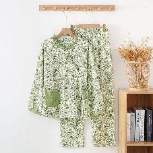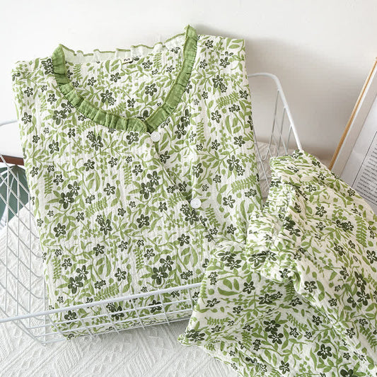 Ownkoti Pastoral Style Floral Cotton Loungewear Set