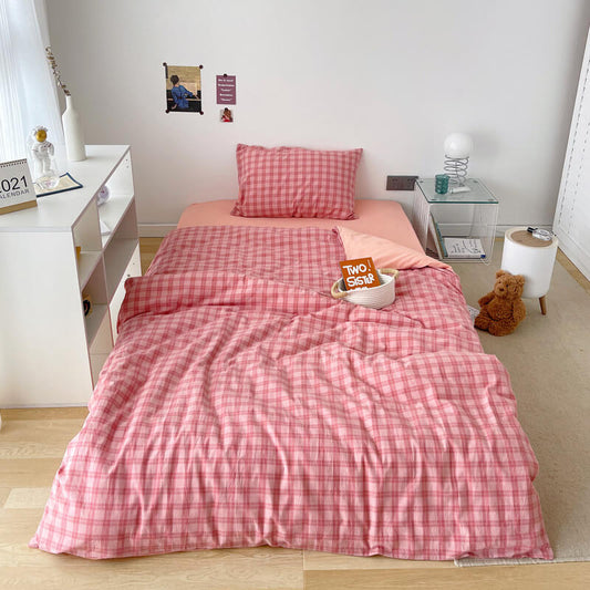 Ownkoti Cotton Plaid Duvet Cover Dorm Bedding Set
