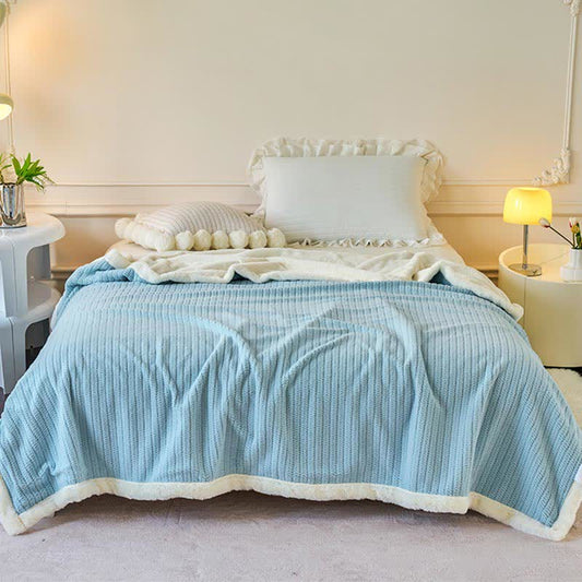 Ownkoti Solid Color Striped Plush Throw Blanket