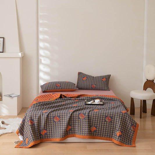 Ownkoti Retro Cotton Gauze Reversible Tassel Quilt