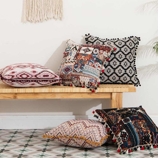 Ownkoti Morocco Jacquard Pillow Cover With Tassels