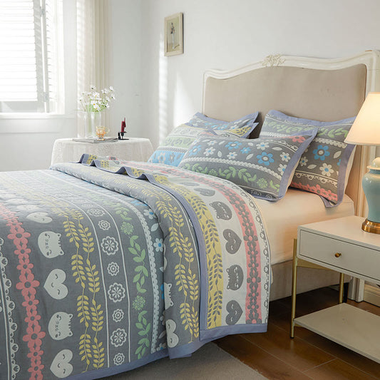 Ownkoti Pastoral Ginkgo Leaf Pattern Cotton Reversible Quilt
