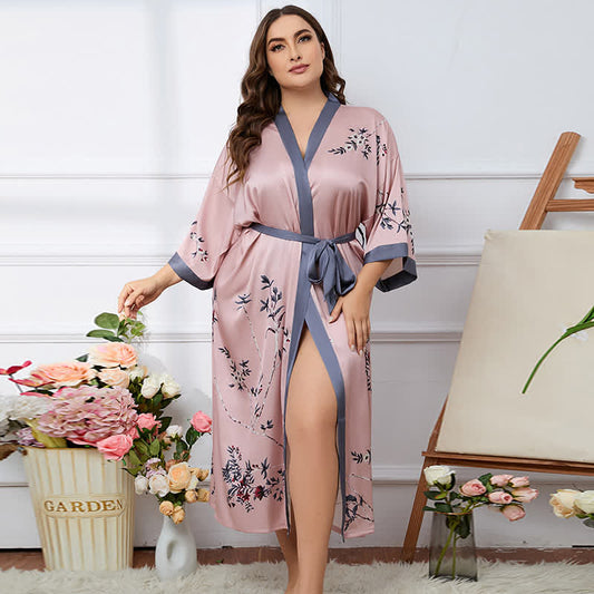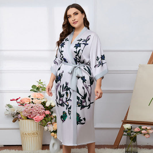 Ownkoti Oriental Floral Bird Kimono Style Bathrobe