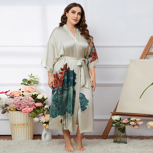 Ownkoti Green Botanical Floral Kimono Style Bathrobe