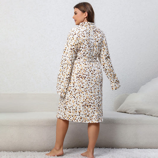 Ownkoti Plus Size Bear Cotton Lapel Loungewear Set