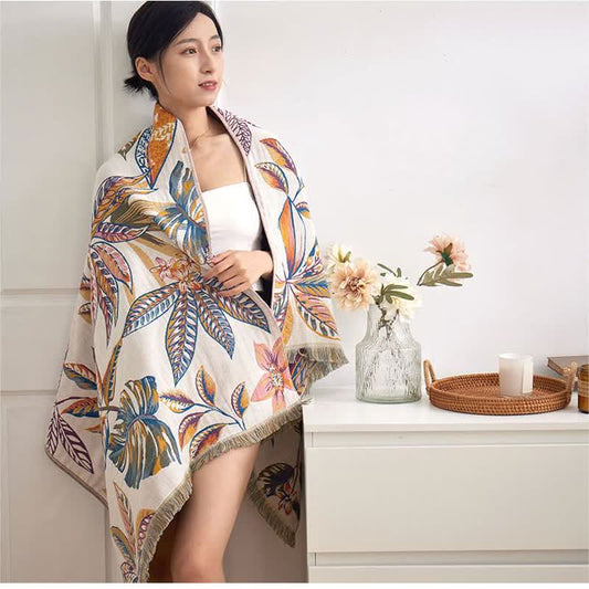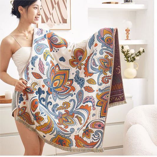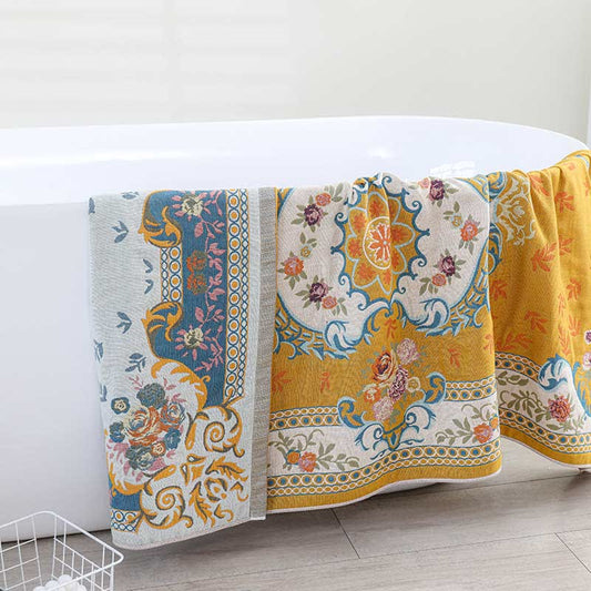 Ownkoti Flower Bird Cotton Towel Reversible Beach Towel Bath Towel