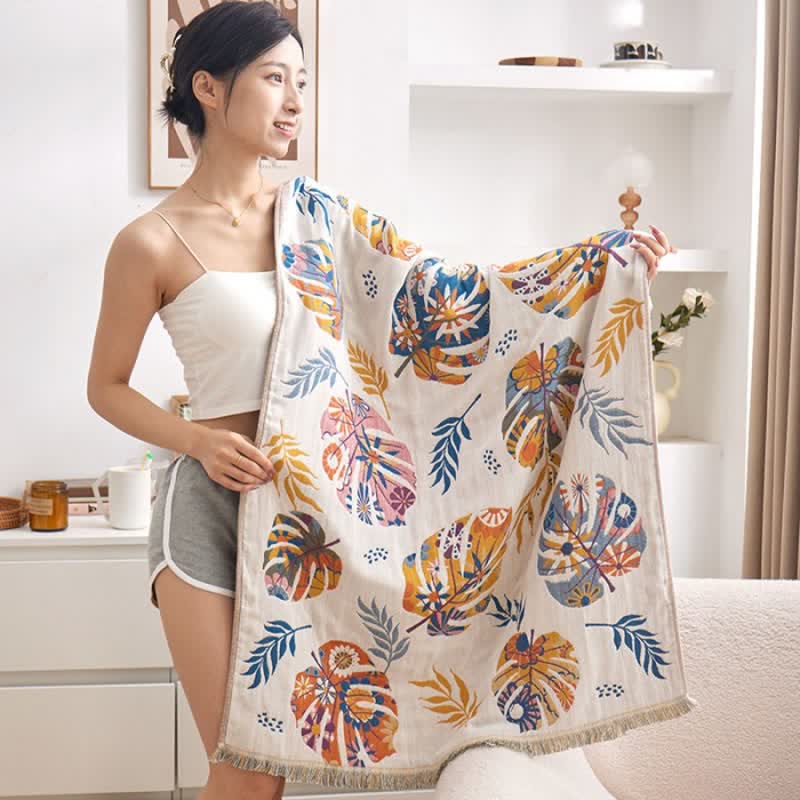 Ownkoti Plaid Flower Breathable Cotton Towel