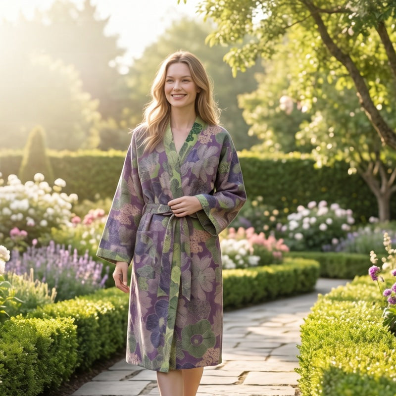 Ownkoti Natural Leaf Cotton Gauze Kimono Robe