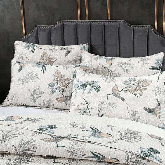 Ownkoti Spring Flower & Bird Quilt with Pillowcase