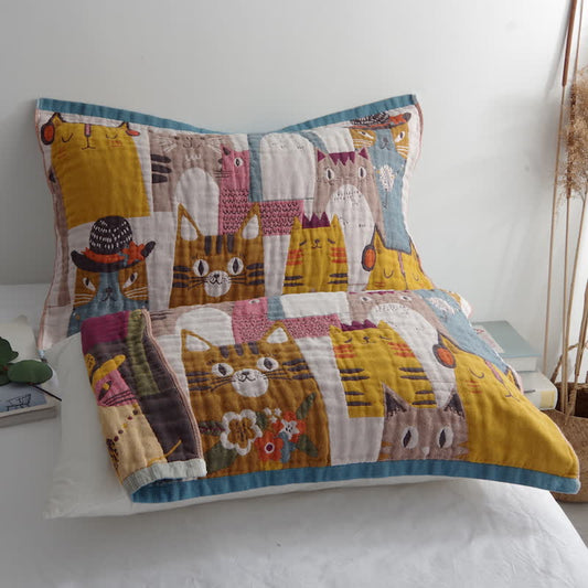 Ownkoti Cat Breathable Cotton Gauze Reversible Quilt