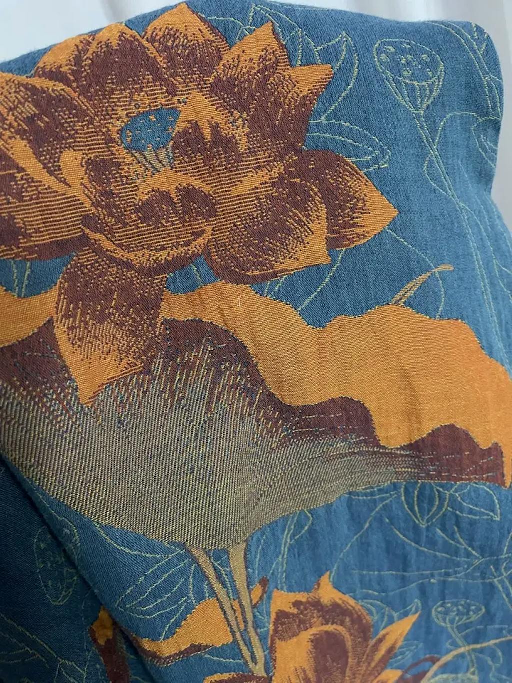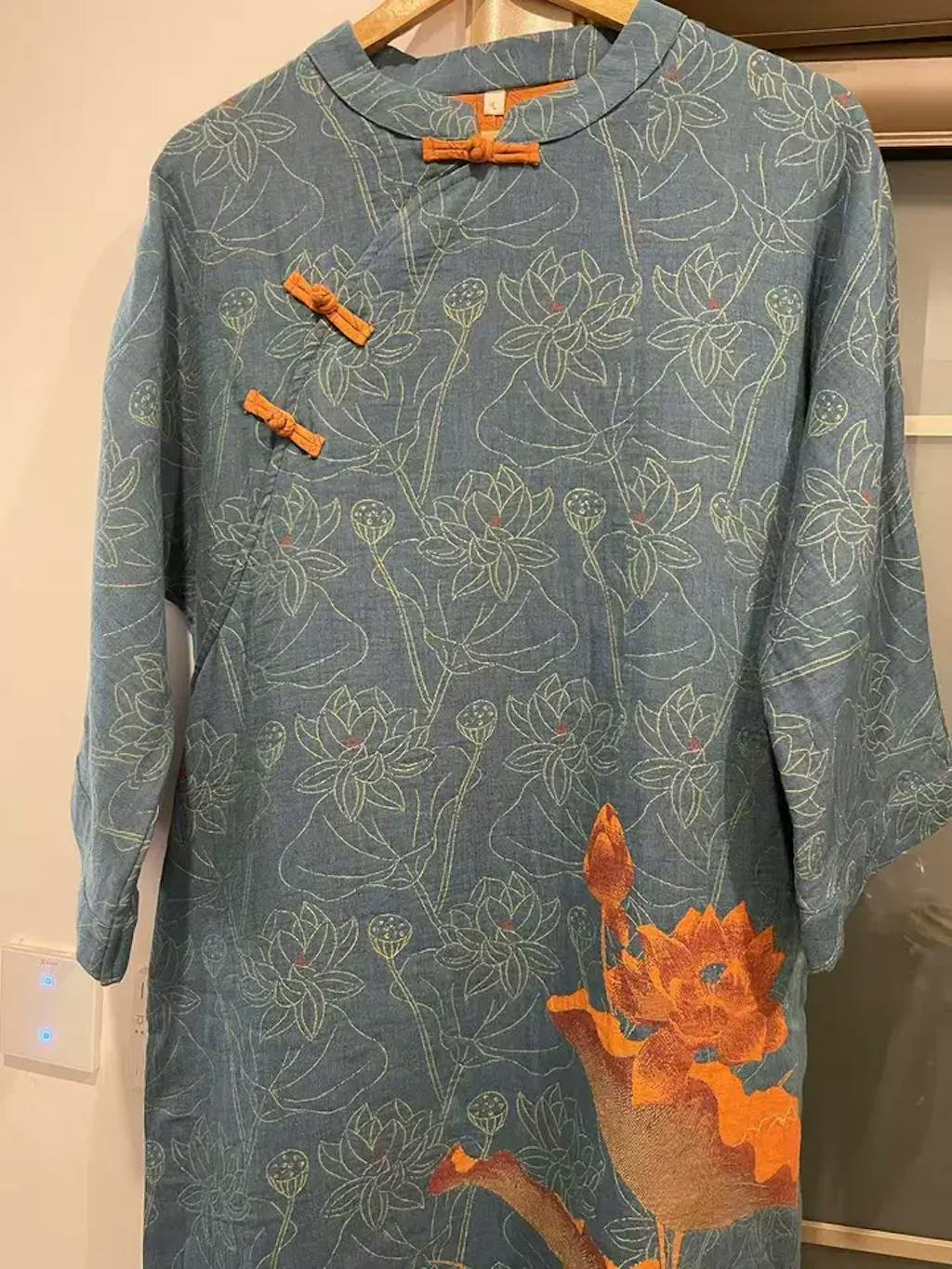 - Symbolic Print Design: The blue base is adorned with vibrant orange lotus blossoms, paired with subtle line-drawn lotus motifs, representing purity, grace, and serenity.
