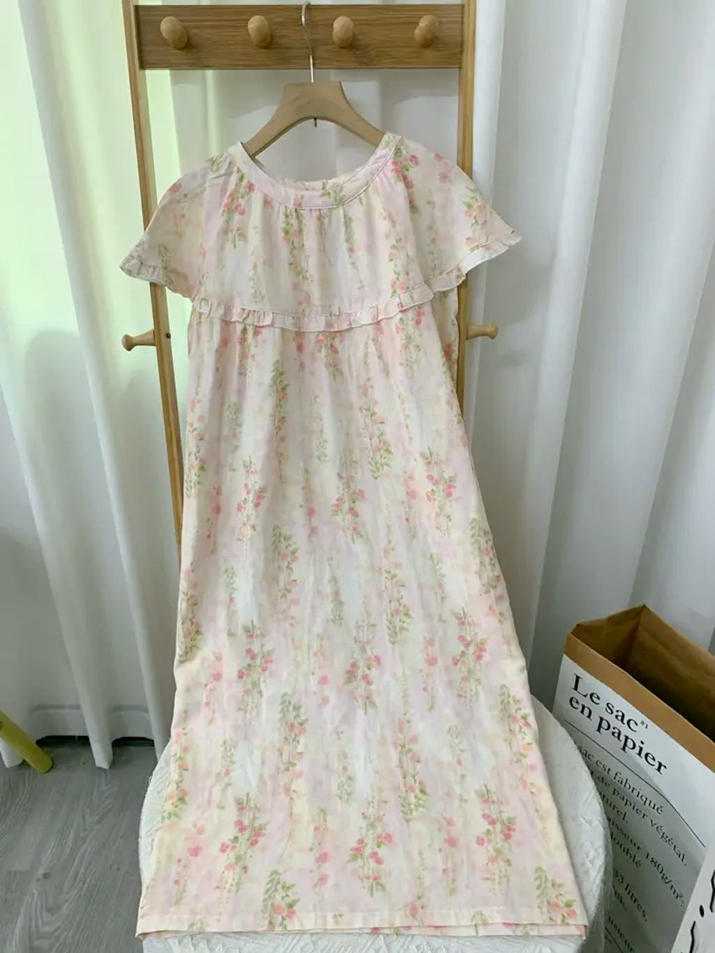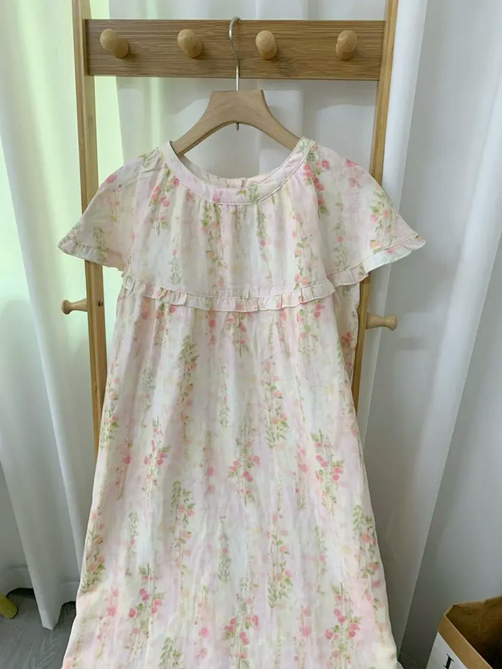 This nightgown really amazed me! The floral pattern is very fresh and sweet, the color is even more beautiful than the picture, and the actual product has absolutely no color difference.