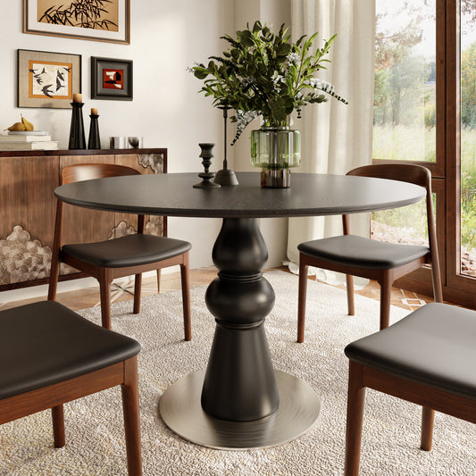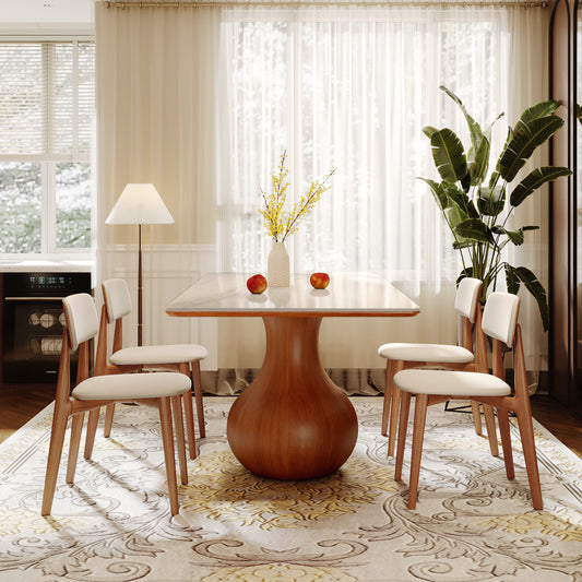 Ownkoti Hourglass-Shaped Solid Wood Base Dining Table For 2-4 Person