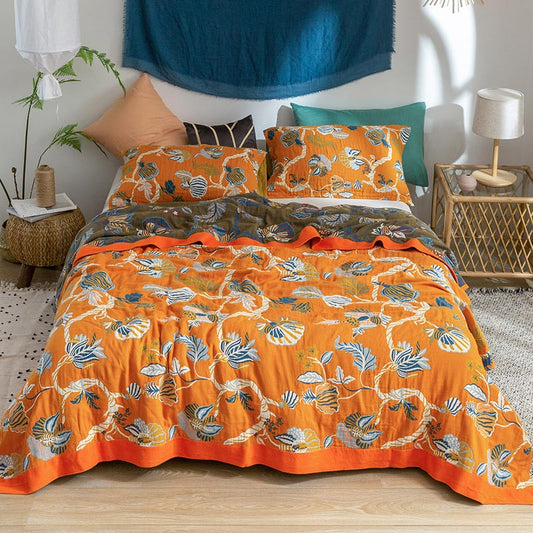 Ownkoti Bluebell Flower Cotton Gauze Reversible Quilt