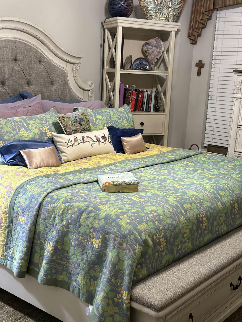 The colors in my new bed cover are amazing and so calming. It’s lightweight and perfect for our hot Texas nights! I’ll be looking for a thicker cover for the winter months.