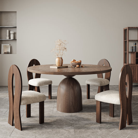 Ownkoti Round Dining Table With Solid Wood Bucket Base For 4-8 People