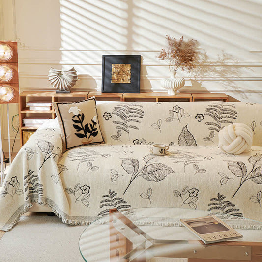 Ownkoti Rural Leaf Chenille Sofa Throw Blanket