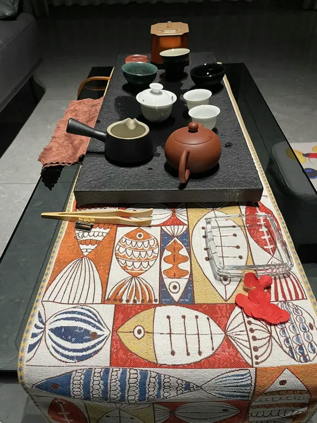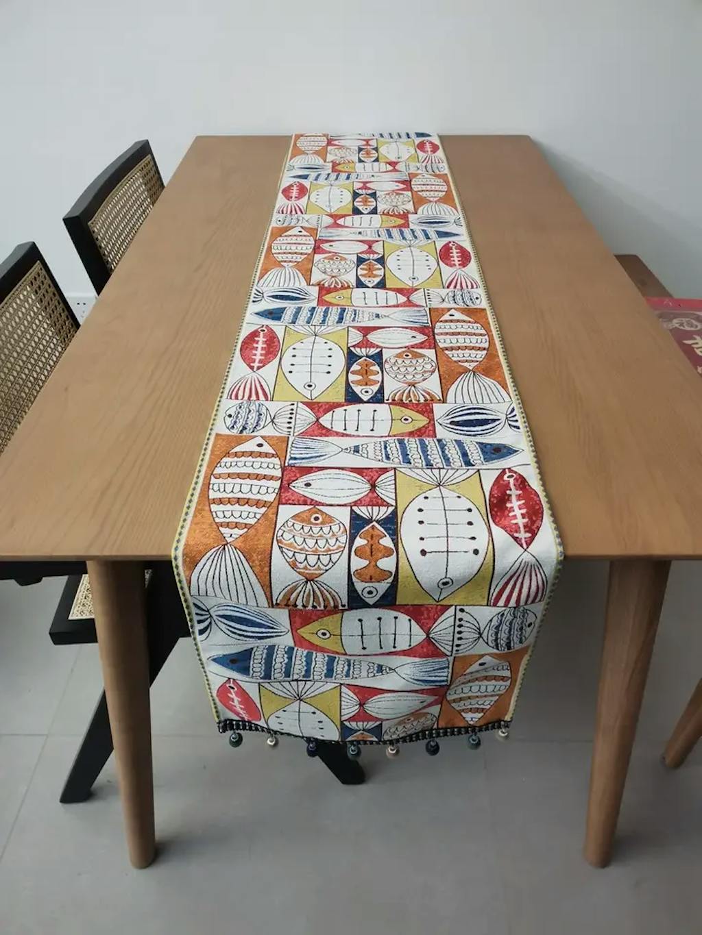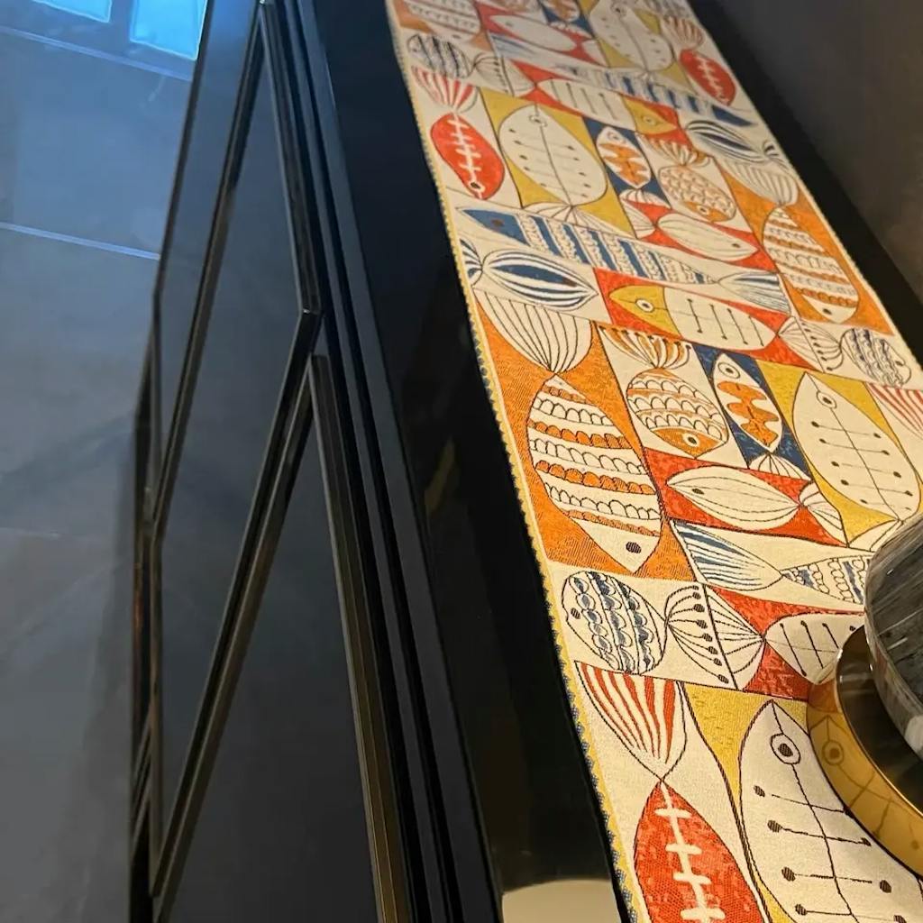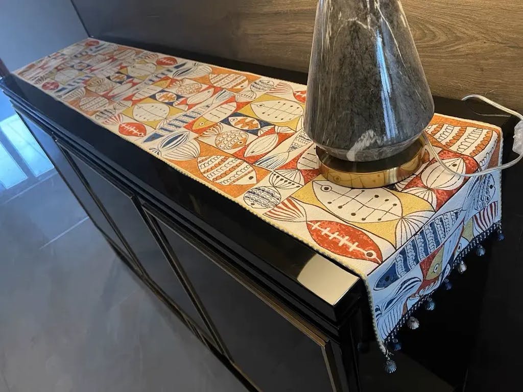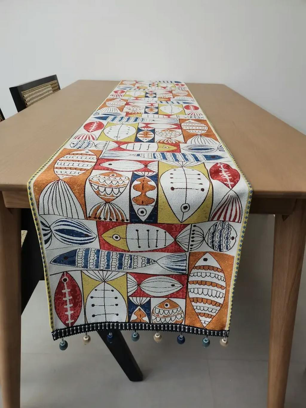 Ownkoti Fish Chenille Tassel Decorative Table Runner