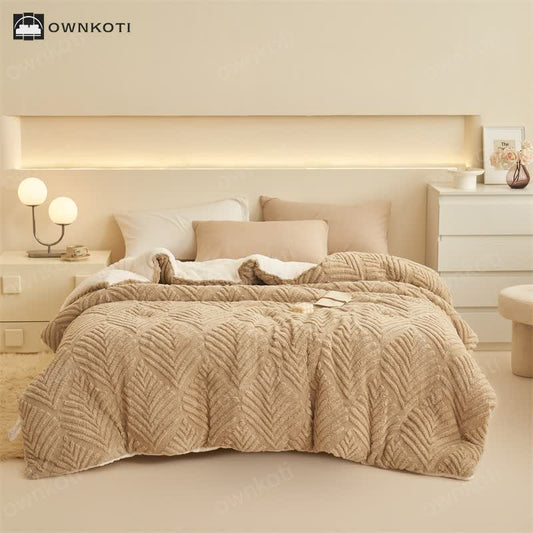Ownkoti Zen Bamboo Leaf Reversible Sherpa Throw Blanket