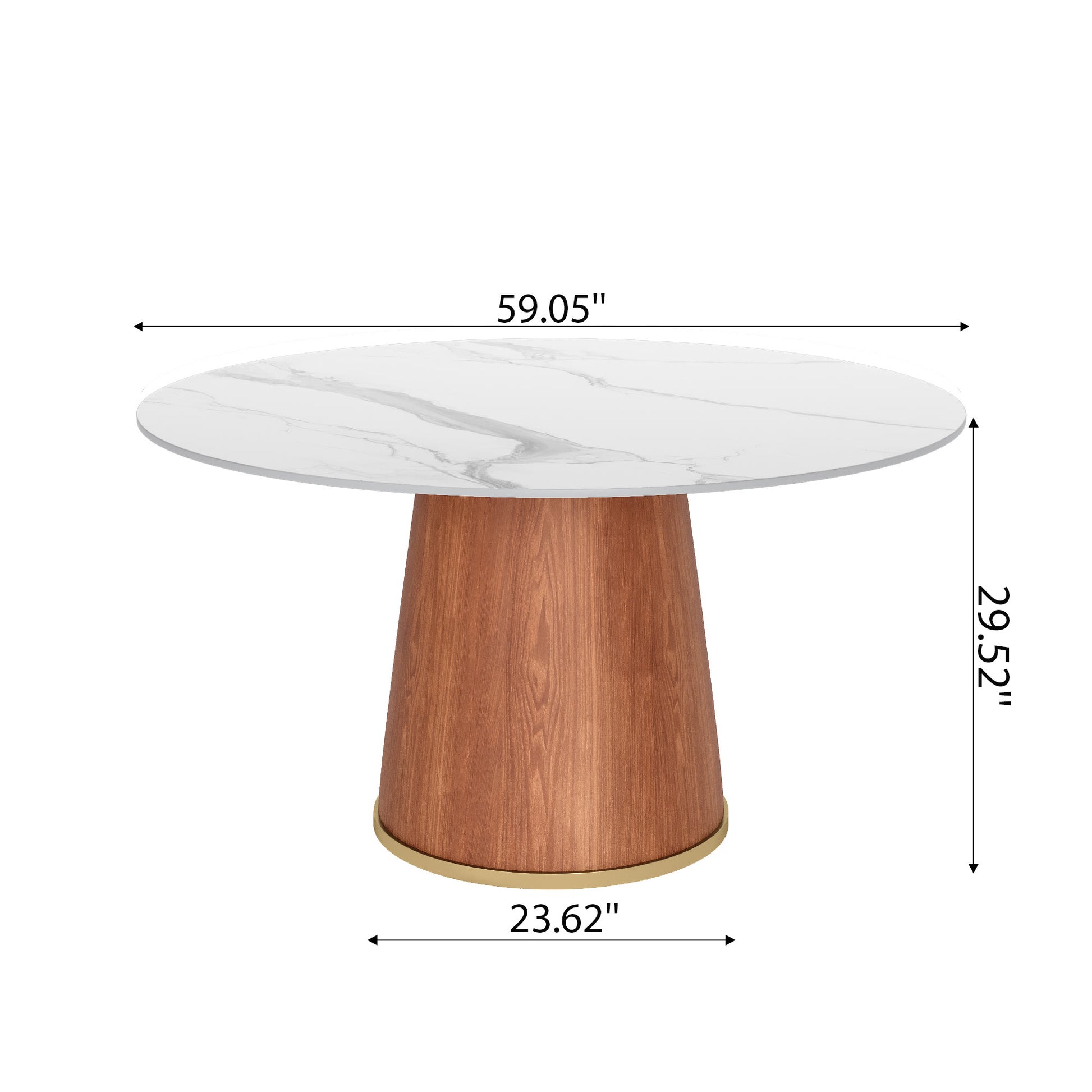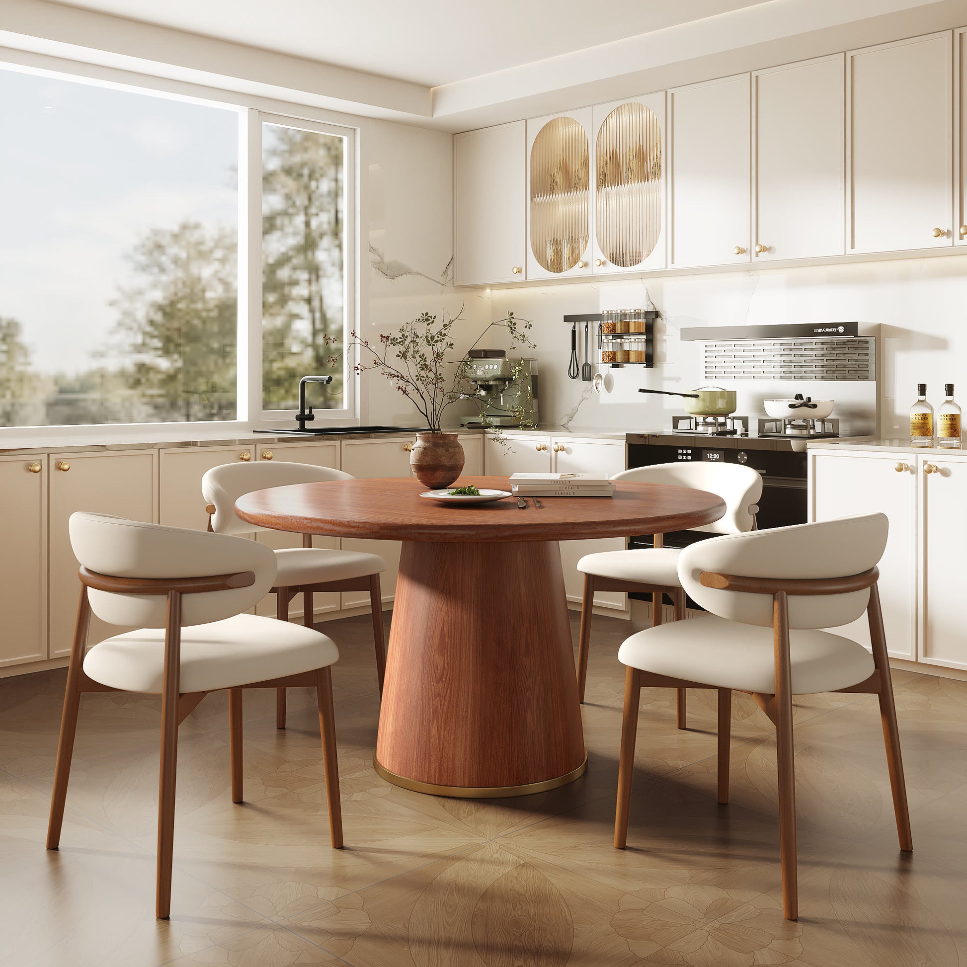 Ownkoti Round Dining Table With Solid Wood Bucket Base For 4-8 People