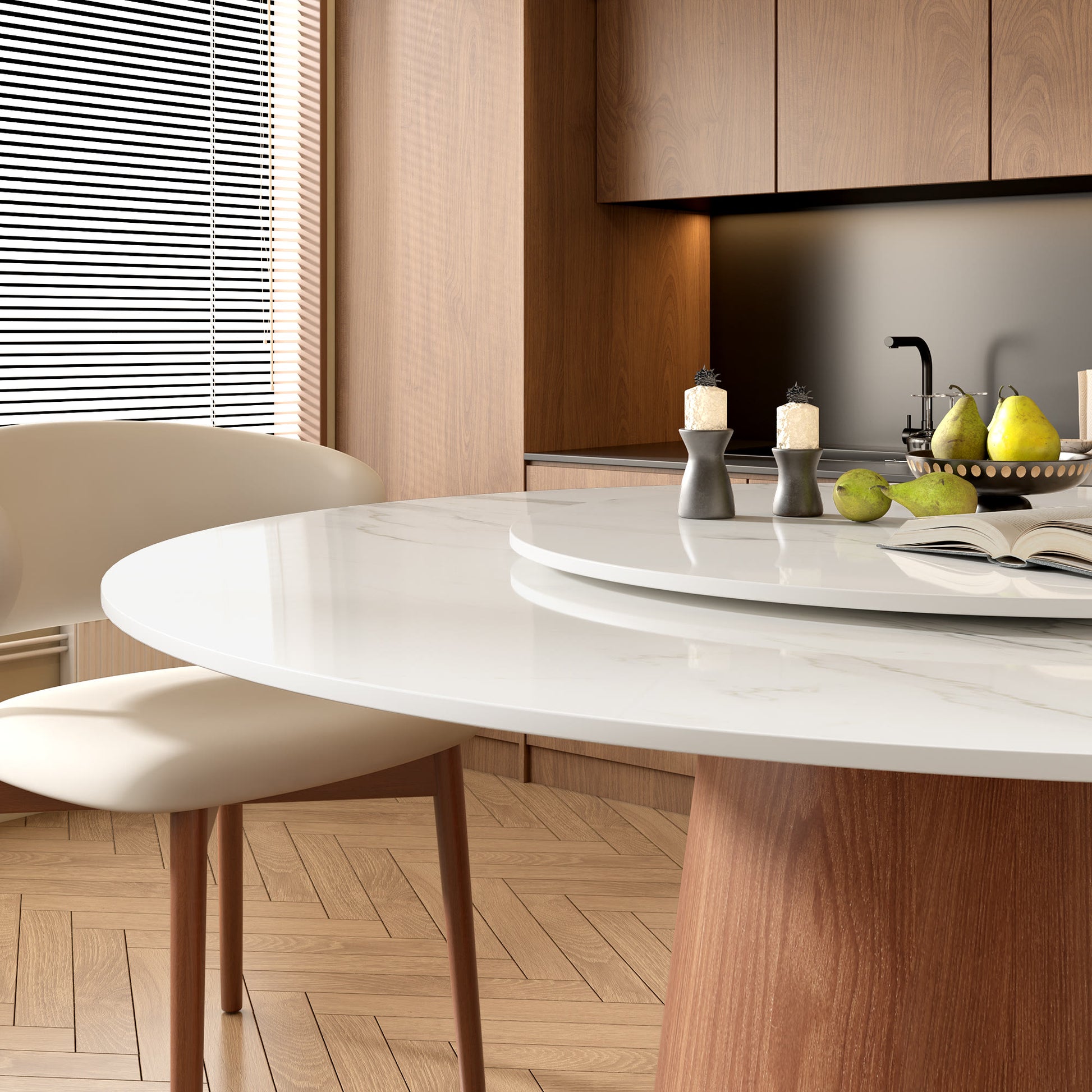 - Convenient turntable: With a lazy Susan design, it is easy to share food on the middle public plate when family gather for dinner, and decorations can be placed on it. There is enough space around the turntable for everyone to place their own plate. The turntable can be removable, which help you clean the desktop easily.