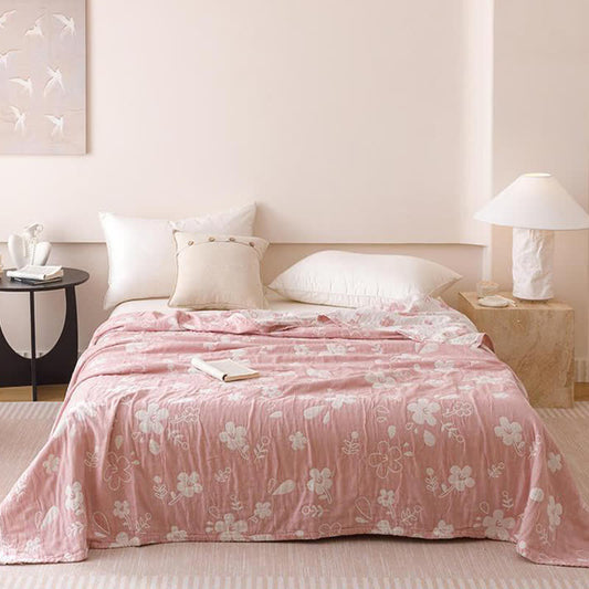 Ownkoti Elegant Floral Jacquard Cotton 3-Layer Gauze Quilt