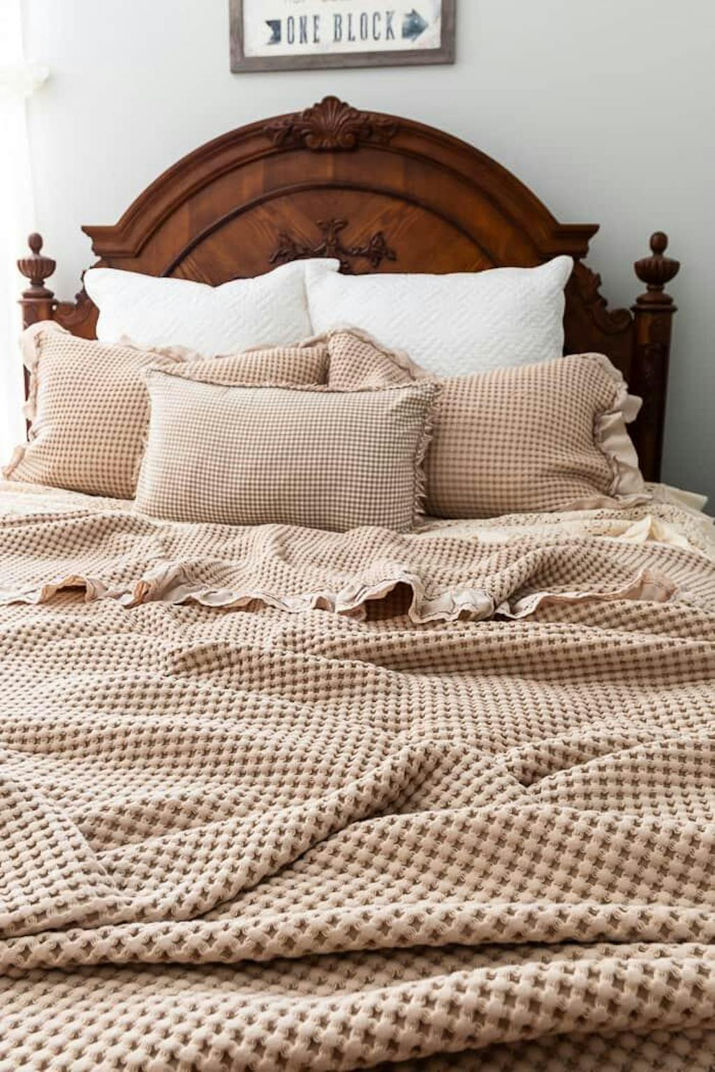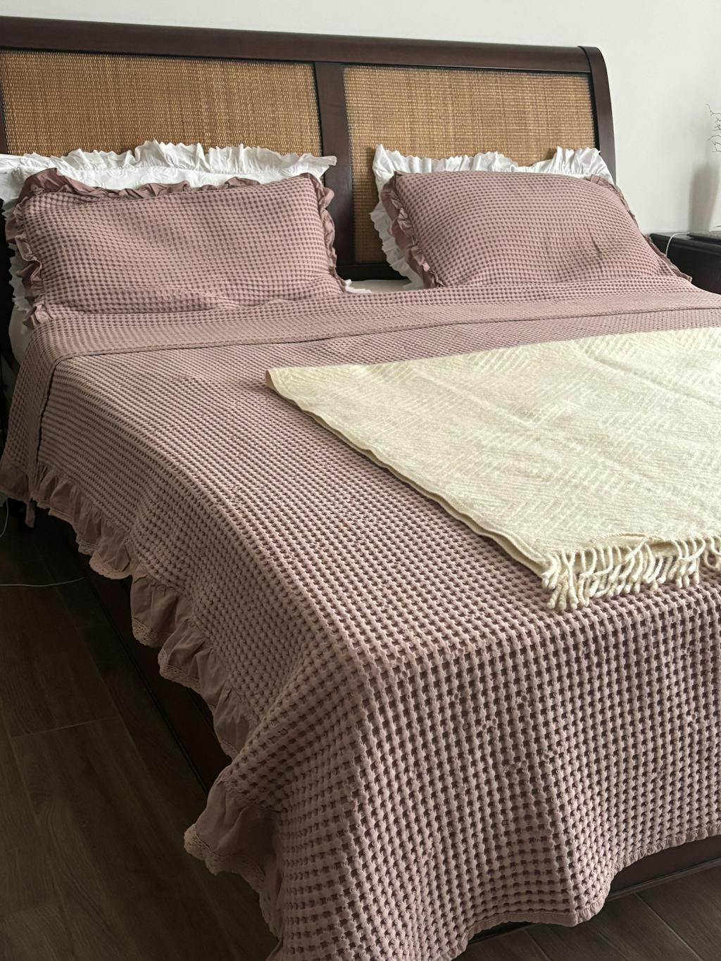 I couldn't love this bedspread more! It's just so pretty, cozy and the ruffles are so charming. It washes and dries beautifully and adds the perfect cozy cottage charm to my guest bedroom!