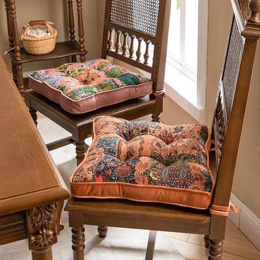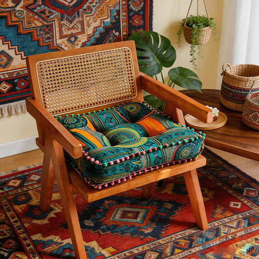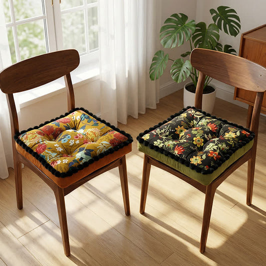 Ownkoti Vintage Floral Seat Cushion with Pom-Pom Trim