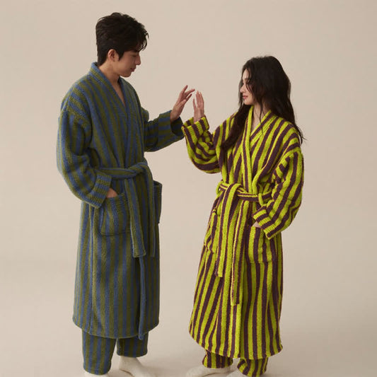 Ownkoti Winter Fleece Modern Stripe Long Bathrobe