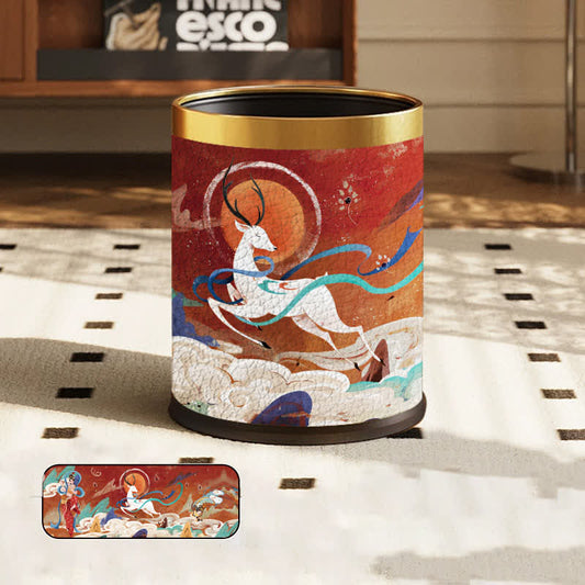 Ownkoti Vintage Oriental Leather Double-layer Trash Bin