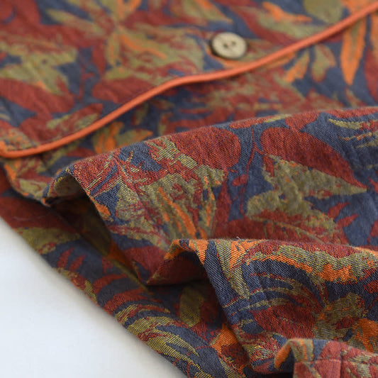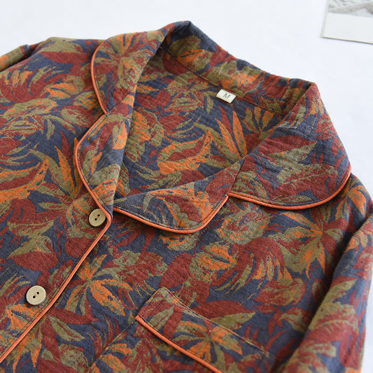 Ownkoti Vintage Leaf Cotton Lapel Loungewear Set