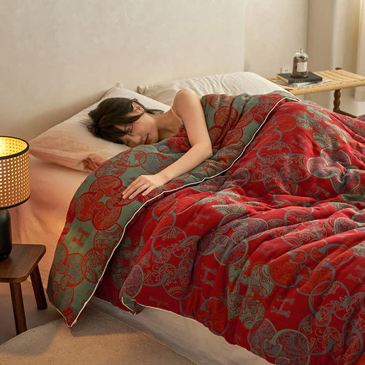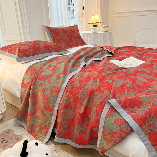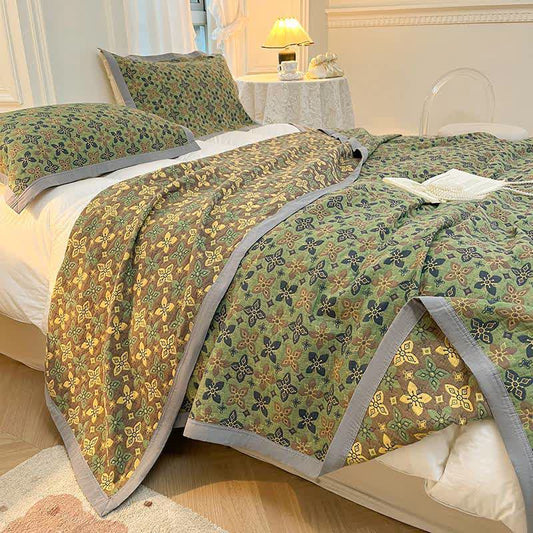 Ownkoti Double Layers Gauze Retro Leaf Comfy Quilt