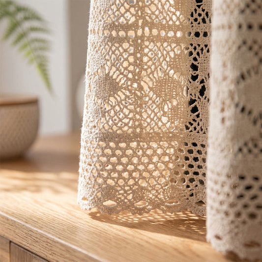 Ownkoti Bohemian Mesh Pattern Crochet Tier Curtain