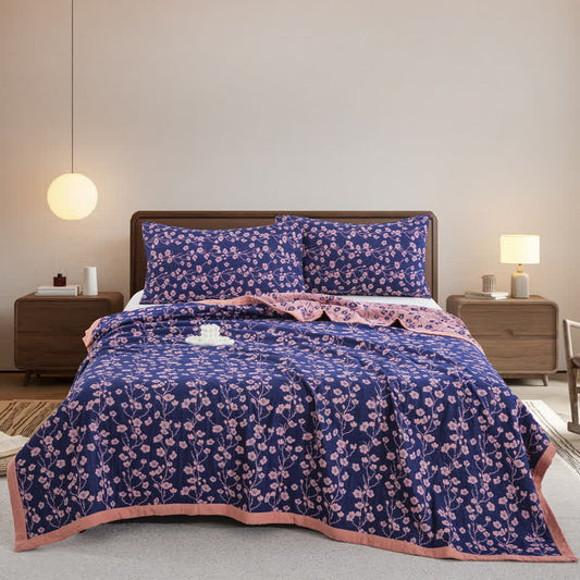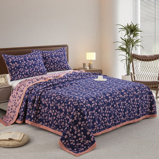Ownkoti Cotton Gauze Reverisible Blomming Flower Quilt