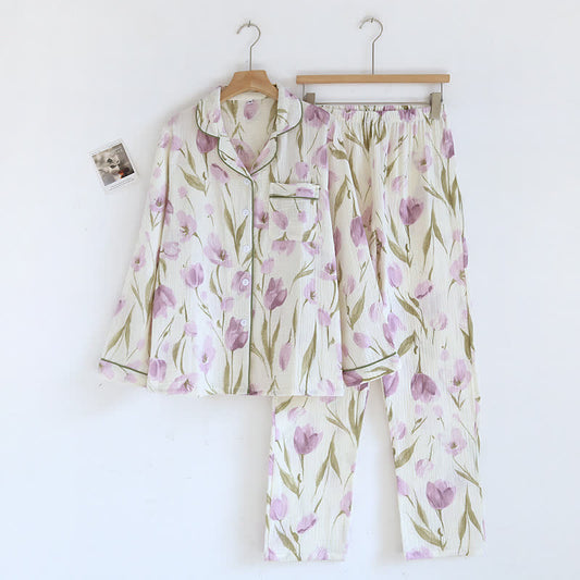 Ownkoti Retro Geometric Pattern Cotton Gauze Loungewear