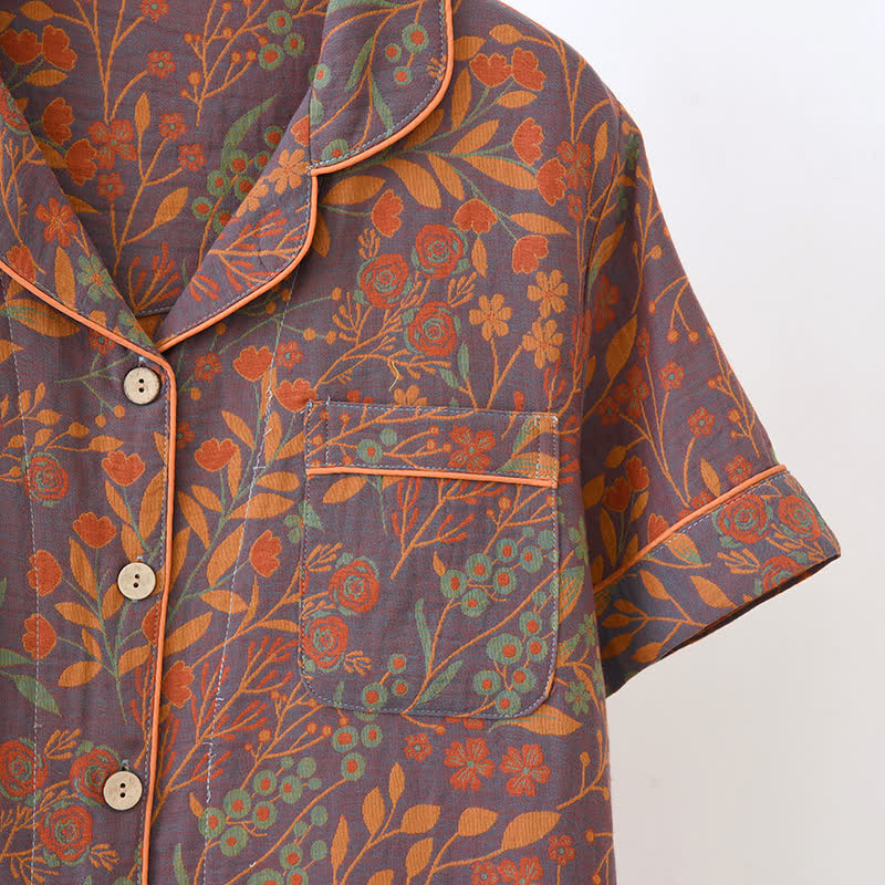 Ownkoti Jacquard Yarn-dyed Cotton Short-sleeved Loungewear Set(3PCS)