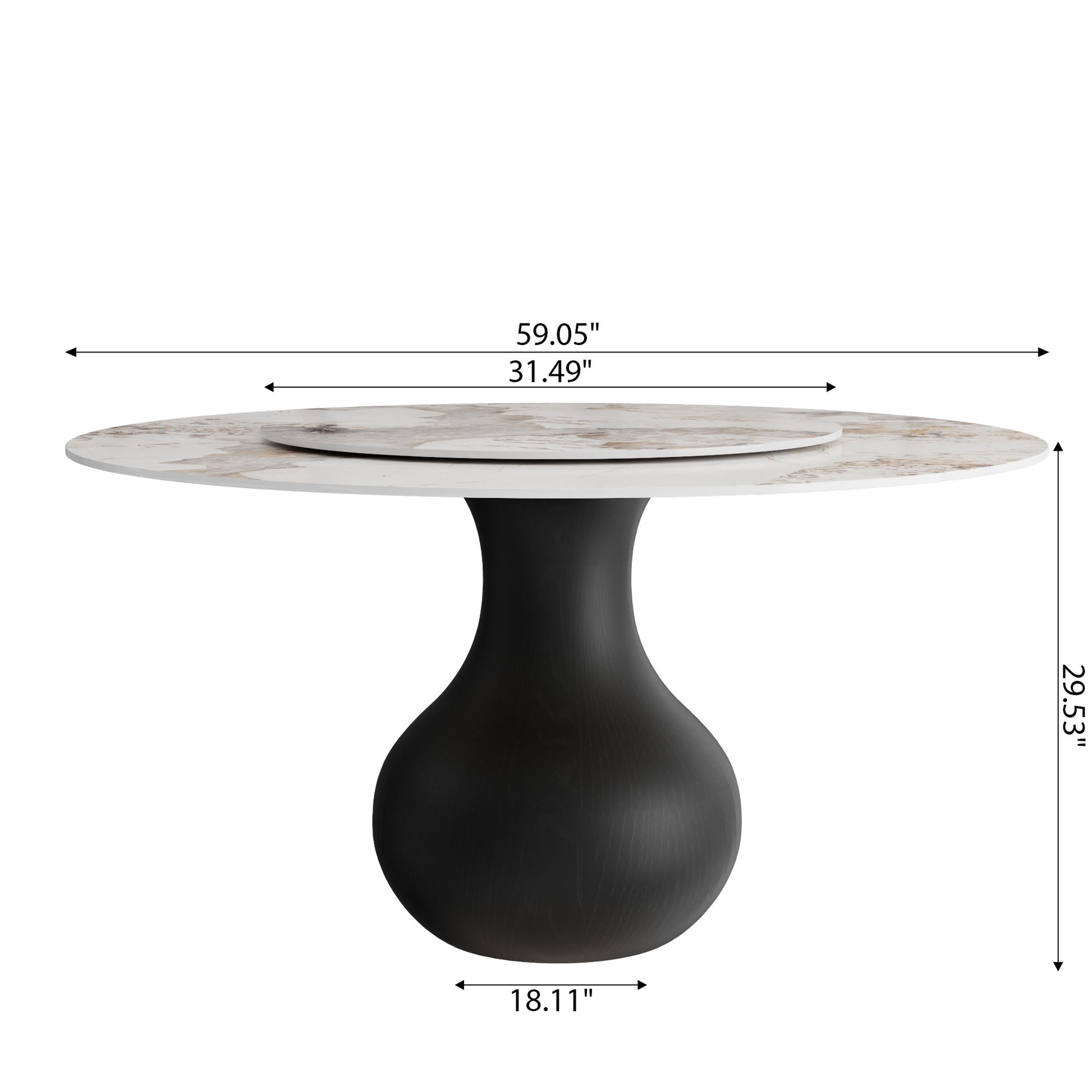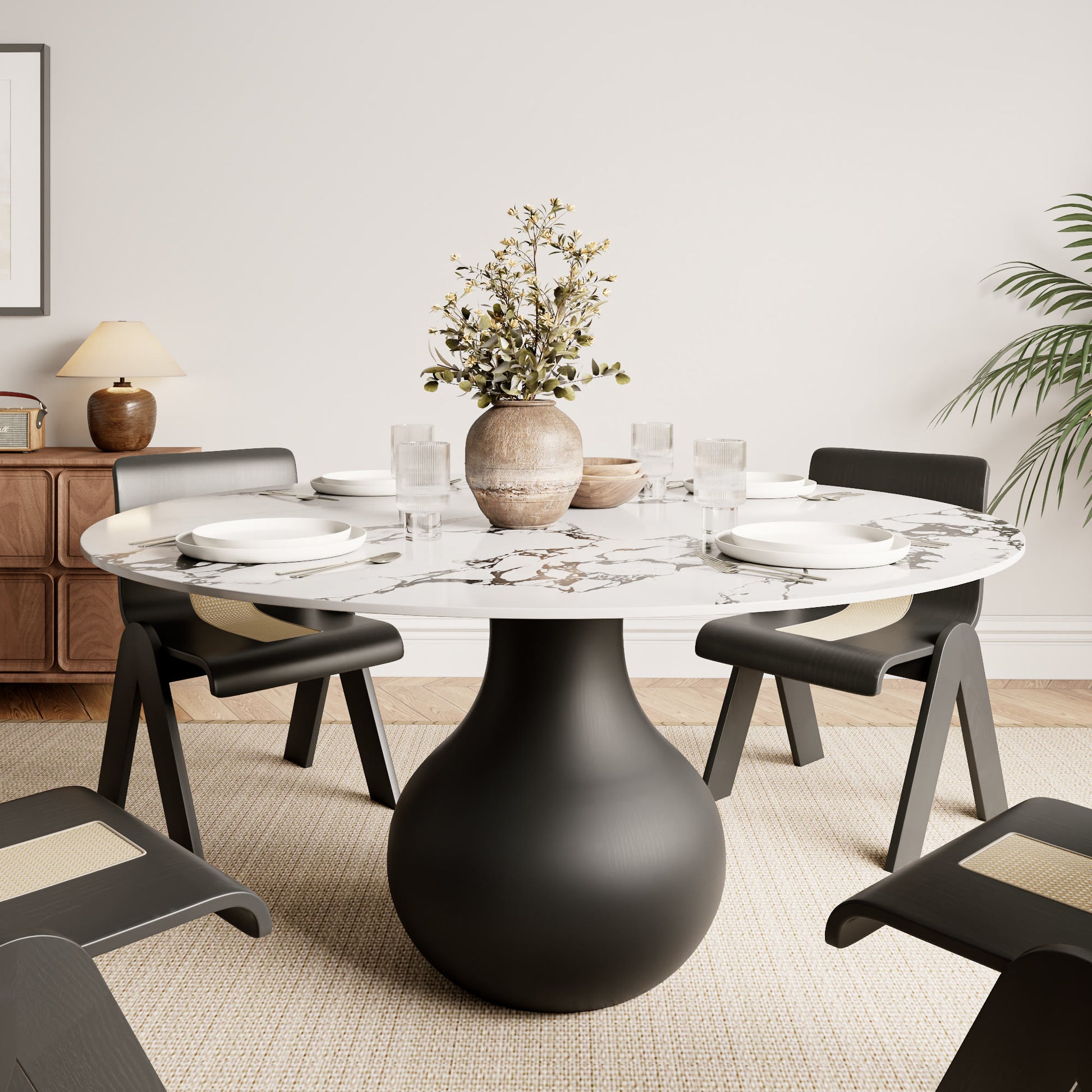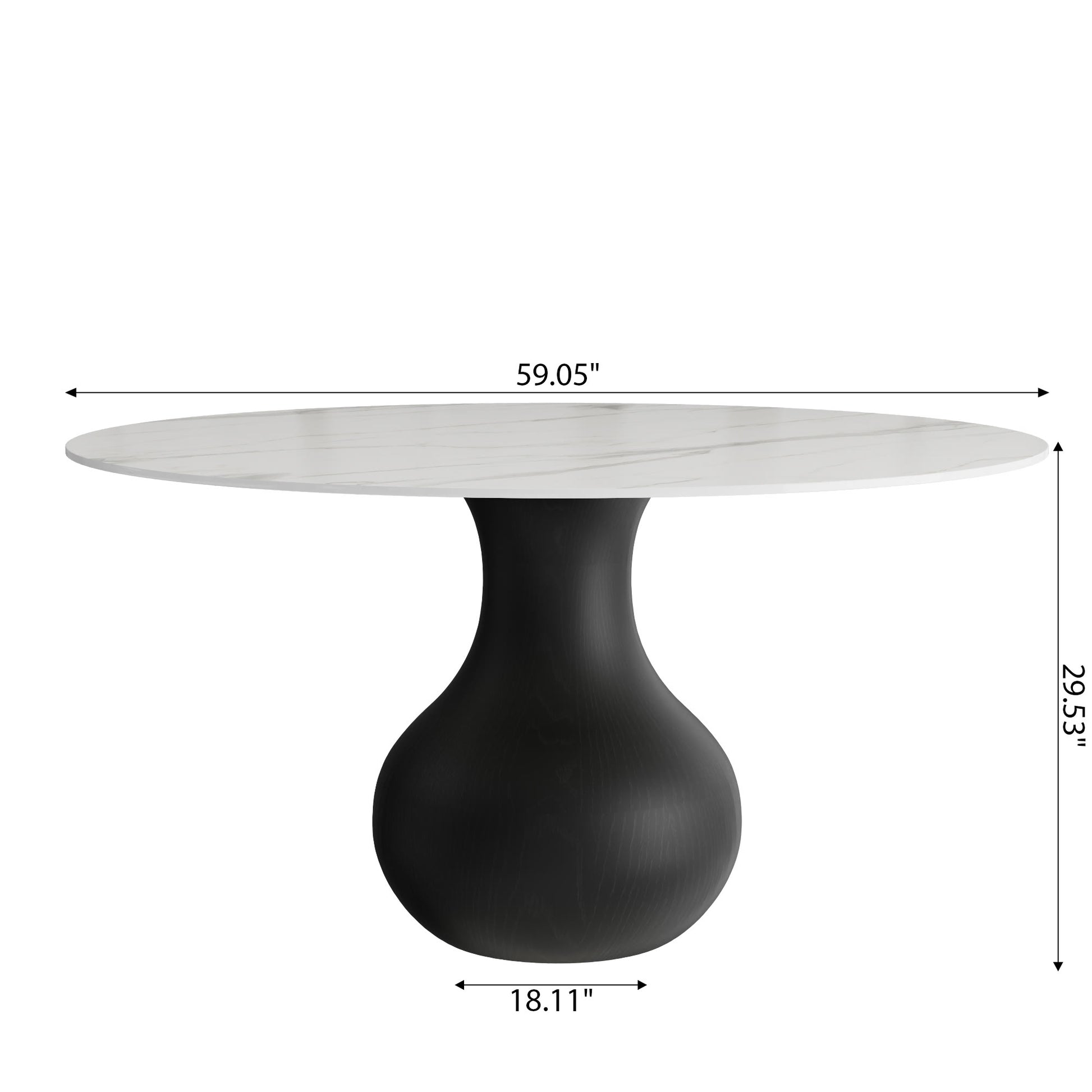 Ownkoti Black Modern Round Dining Table WIth Vase-shaped Pedestal Base For 4/6/8 Person