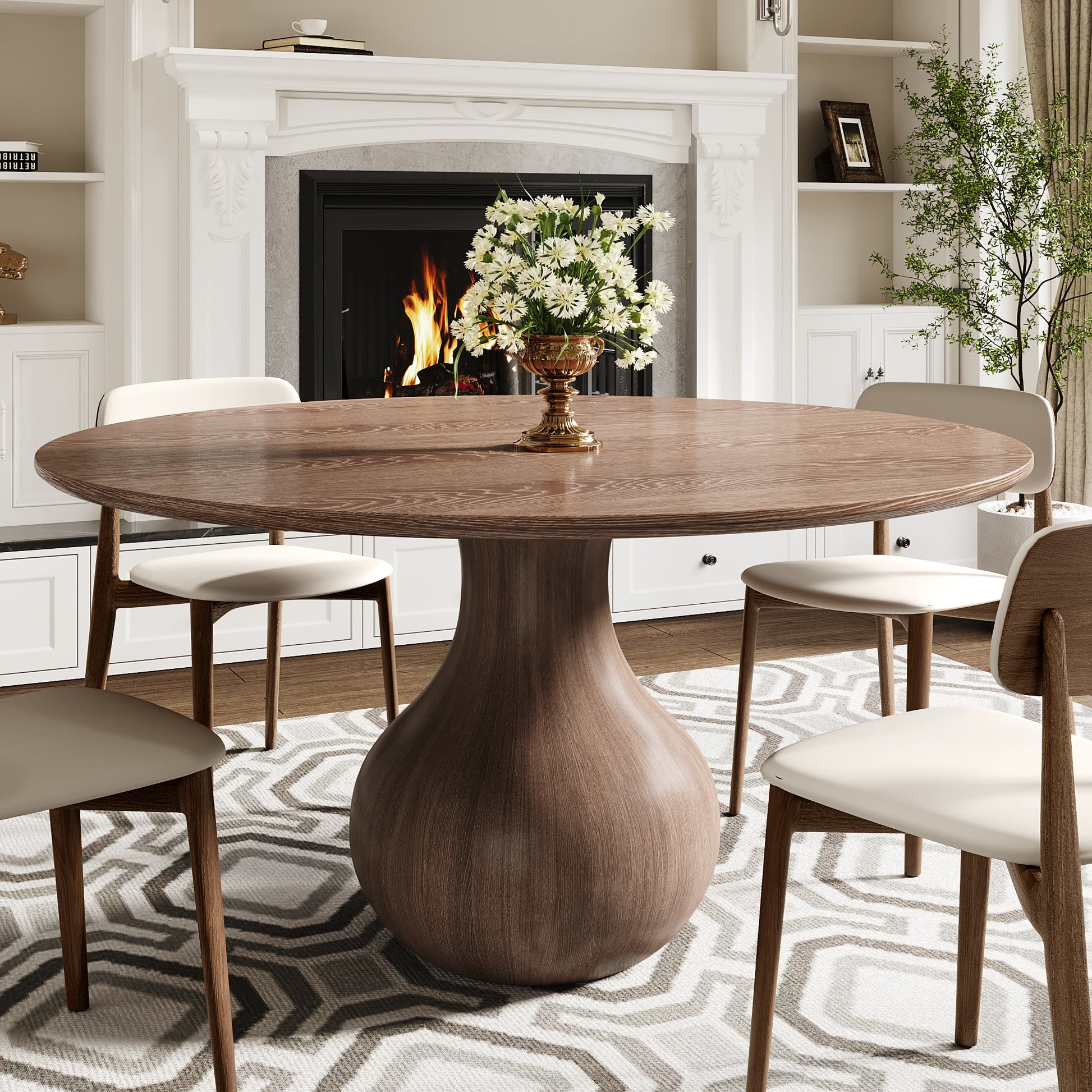 - Durable and Safe to use: The natural density of solid wood provides a strong, stable foundation, making it a reliable centerpiece for daily dining and gatherings. Its round shape also helps reduce the risk of accidental bumps. Each tabletop showcases a stunning walnut wood grain, elevating your dining space with a touch of elegance and sophistication.