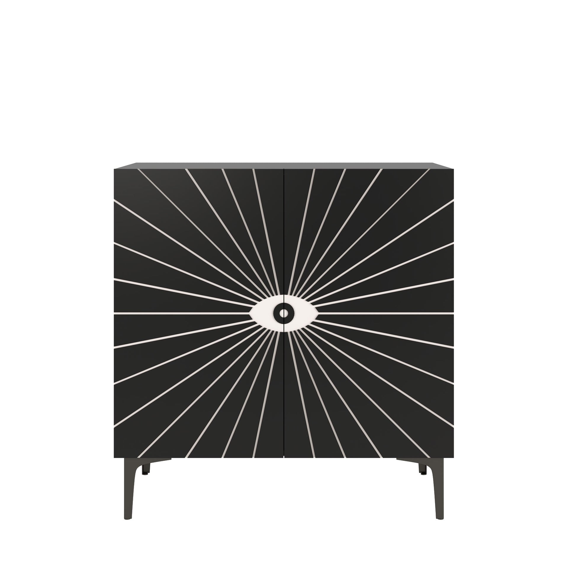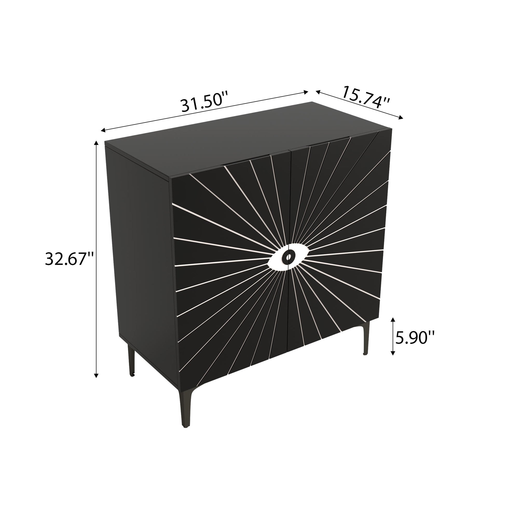 - Unique Design: The cabinet doors feature a distinctive eye design with recessed handles for a modern look. The black metal legs match the cabinet body and suit various home styles.