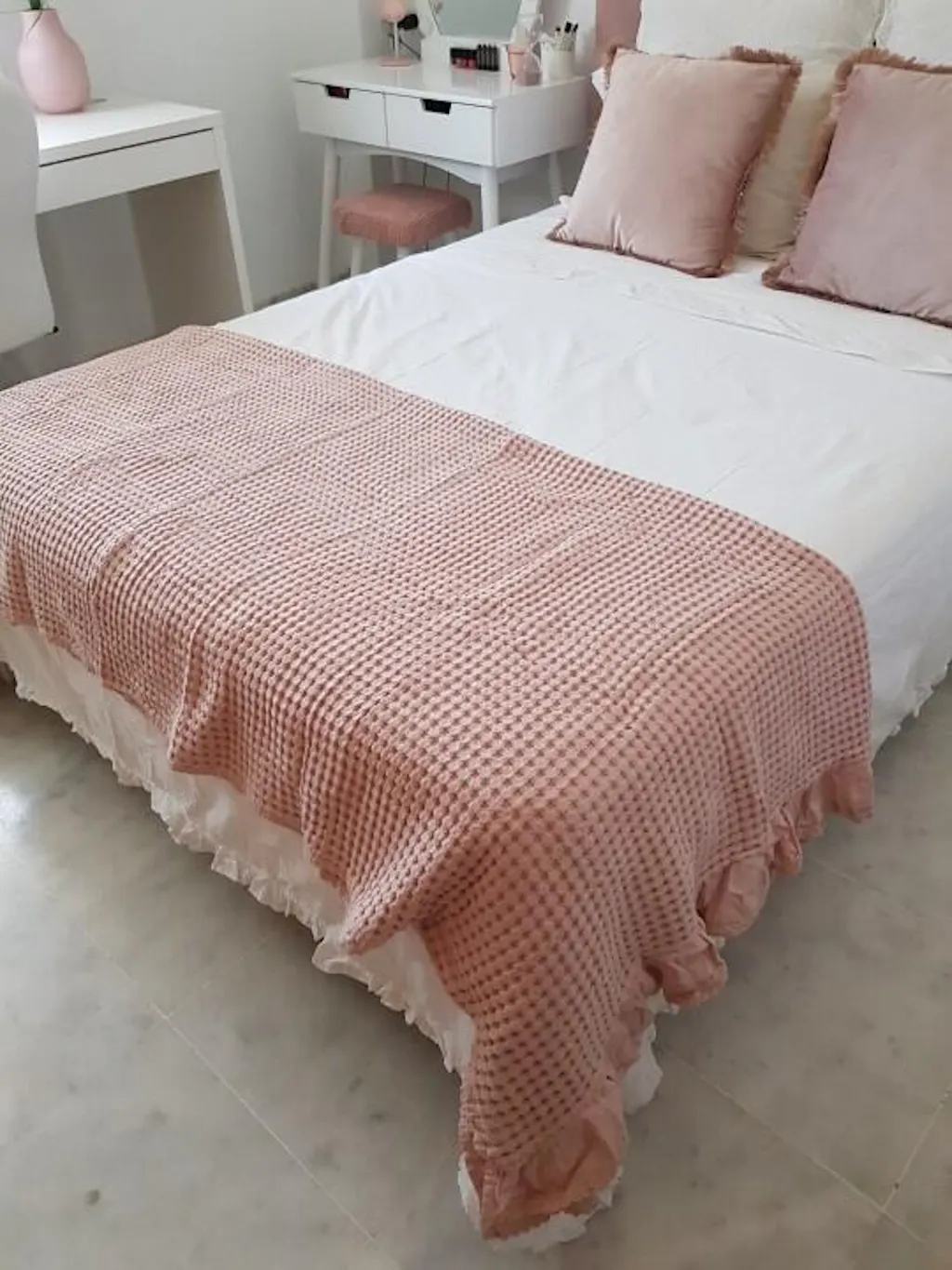 I couldn't love this bedspread more! It's just so pretty, cozy and the ruffles are so charming. It washes and dries beautifully and adds the perfect cozy cottage charm to my guest bedroom!