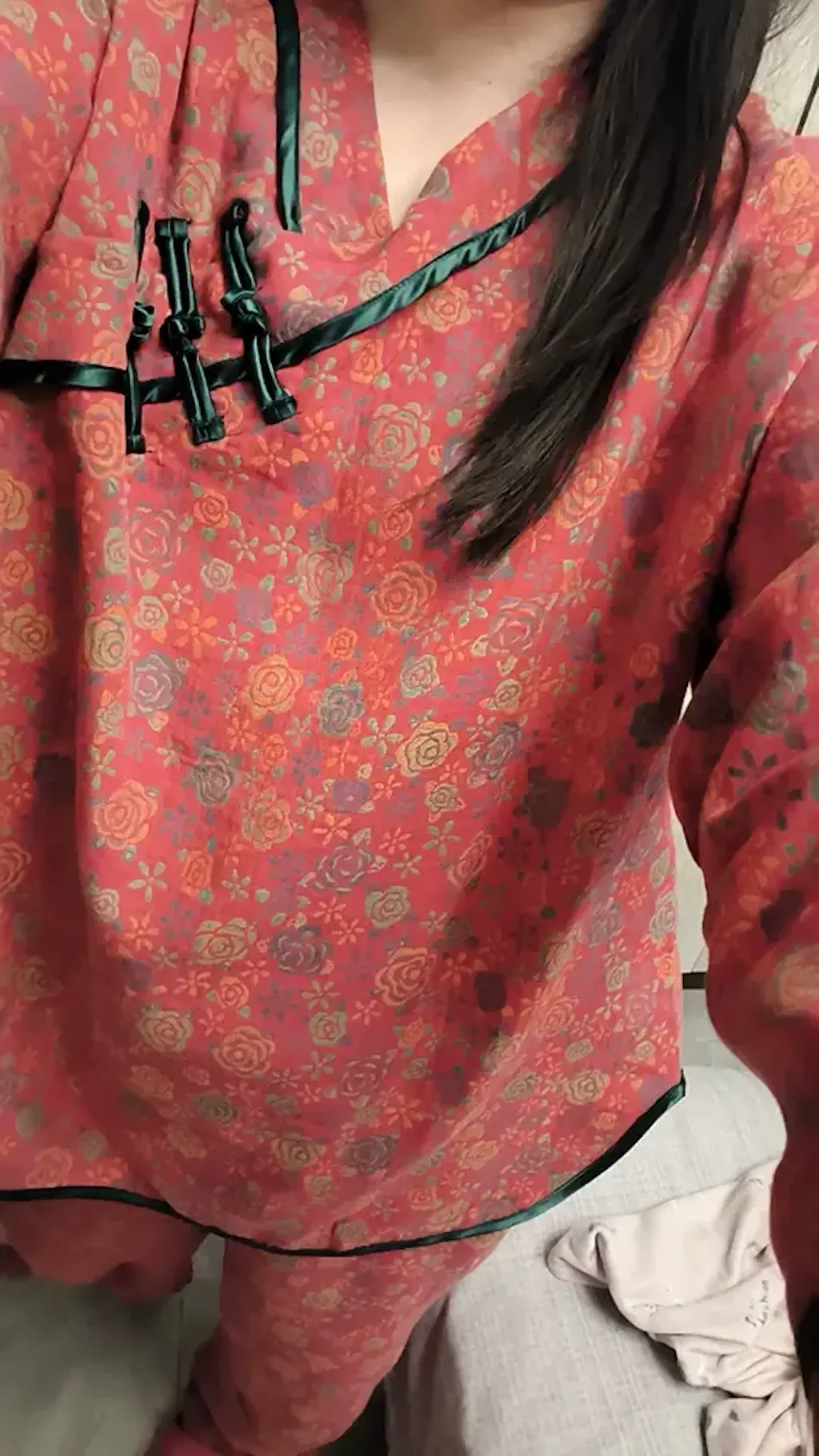 Made from luxurious cotton fabric, this set is designed for a soft touch against the skin while offering breathability for a cozy night's sleep or peaceful lounging. The stunning rose pattern adds a feminine and sophisticated flair, making it an ideal choice for pampering yourself or giving as a thoughtful gift. Experience restful nights and stylish relaxation with this exquisite pajama set.