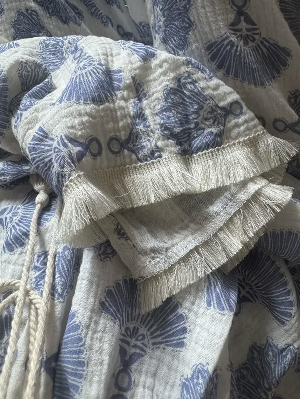 - Pattern Meaning: Set against a crisp white background, the elegant blue fan-shaped prints symbolize grace, openness, and the quiet beauty of tradition blended with modern comfort.