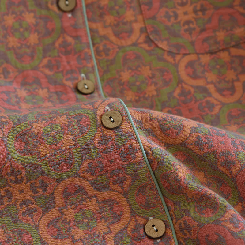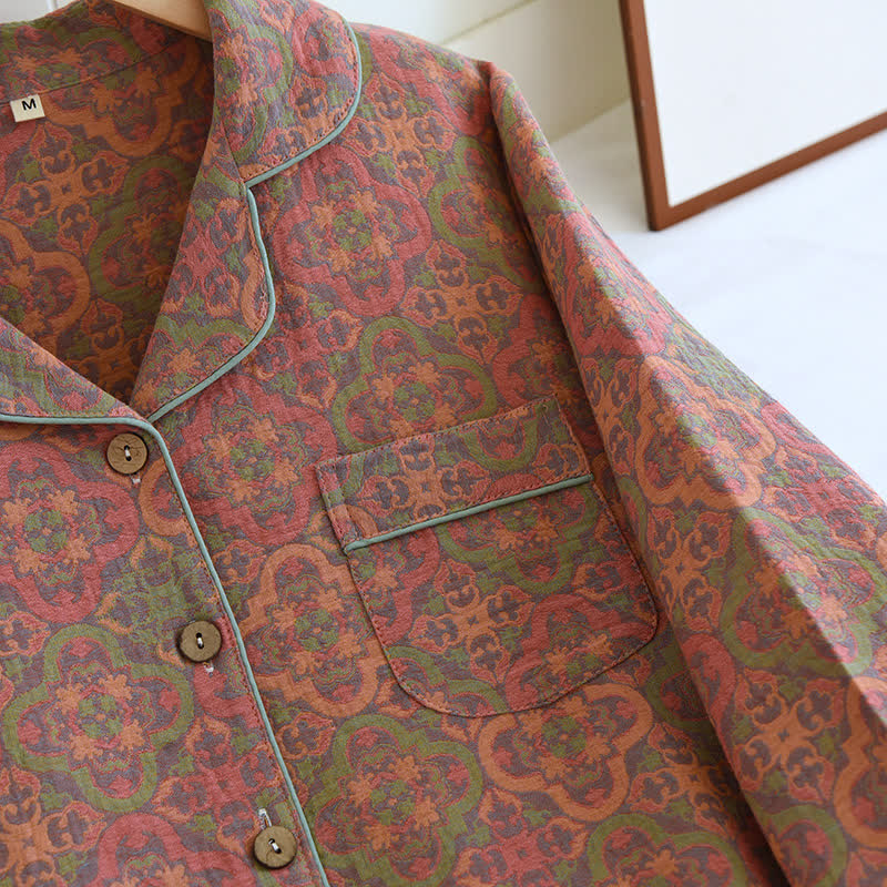 Ownkoti Retro Jacquard Cotton Gauze Loungewear Set