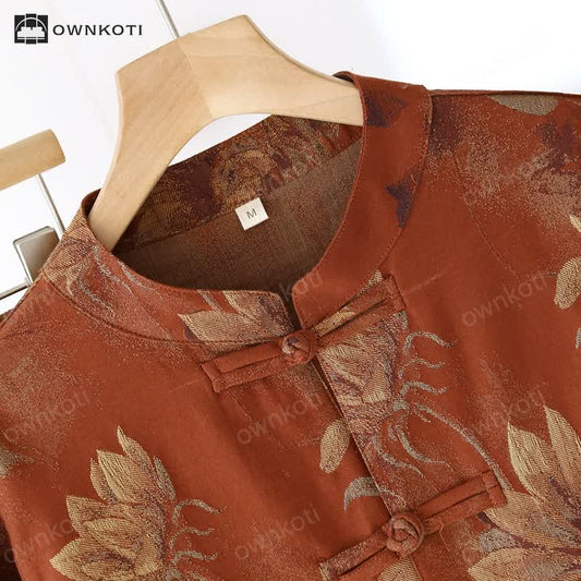Ownkoti Ginkgo Leaf Oriental Tassel Cotton Pajamas