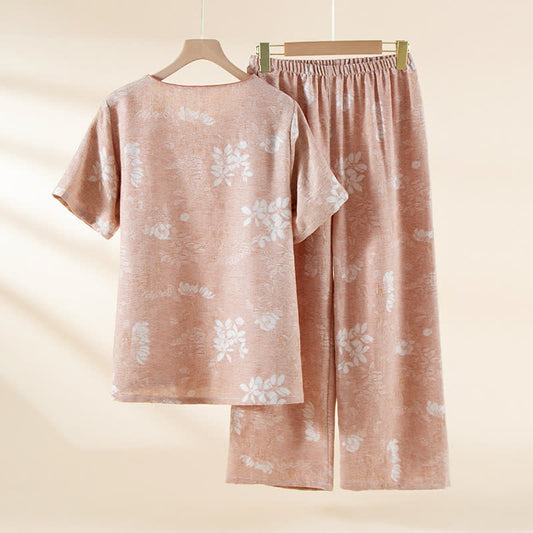 Ownkoti Plus Size Soft Breathable Pastoral Pajama Set